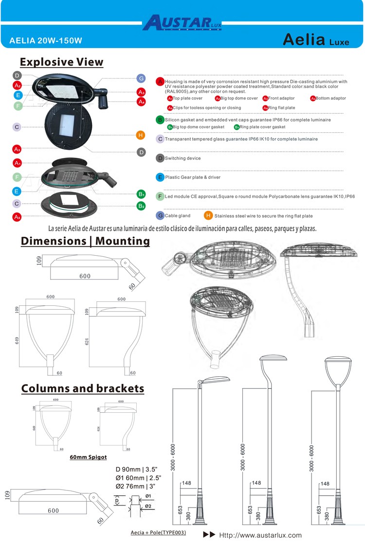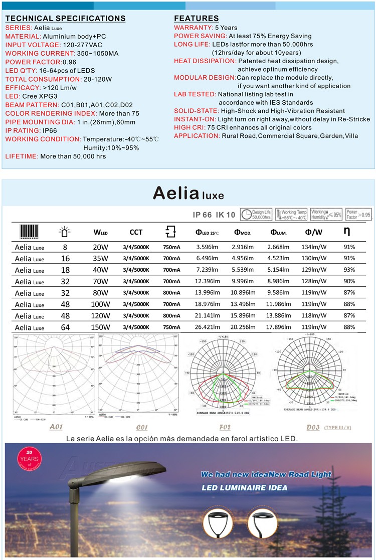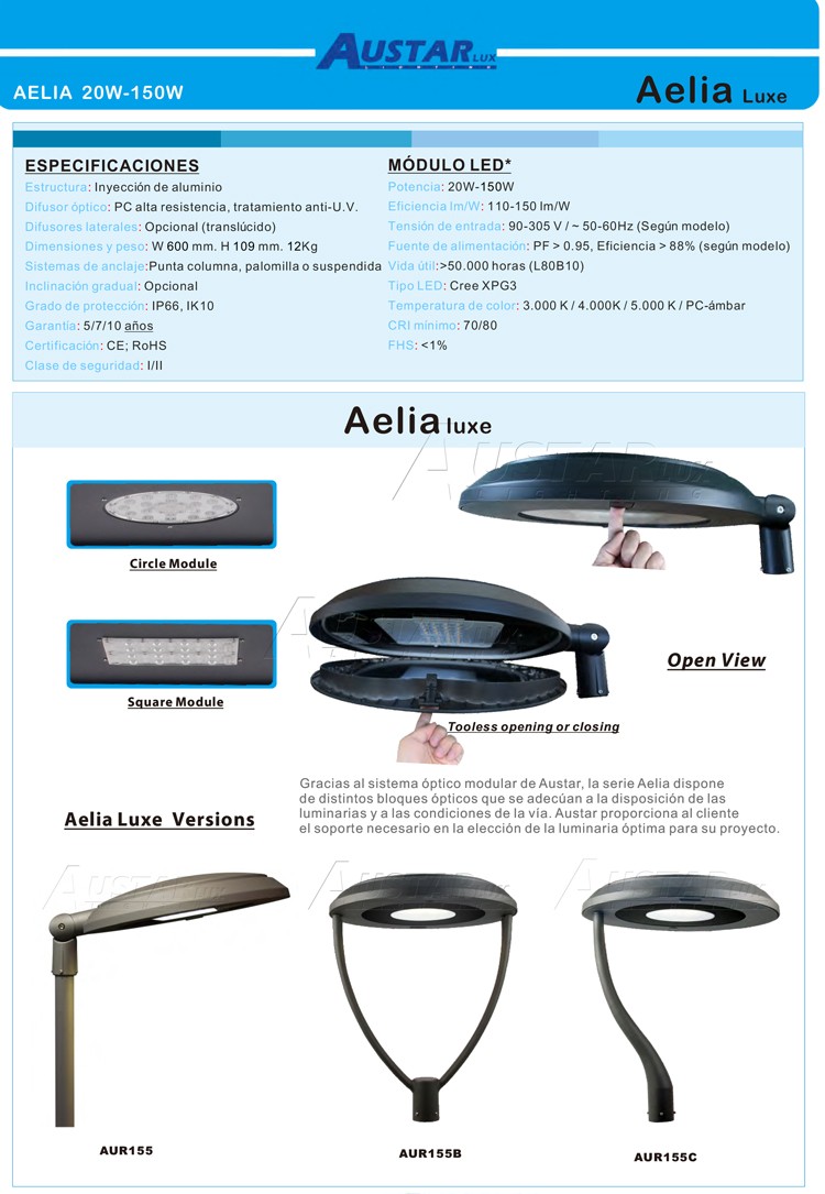 SERIES: AUR155/AUR155B/AUR155C EFFICACY: ≥125 lm/w | LED: Cree XPG3 COLOR TEMP.: 3000K, 4000K, 5000K MOUNTING DIA: 60mm IP RATING: IP66 |